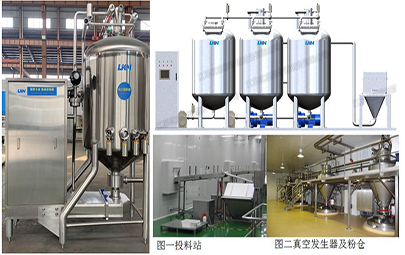 優(yōu)康恩自動化料系統(tǒng)用于對粉料和其它配料進行乳化和水化的混料系統(tǒng)設(shè)備。其中真空混料機可在密閉真空容器下進行高速剪切乳化混合綜合產(chǎn)品、各種粉末和液體等,每小時化粉量可達到3T-5T。優(yōu)康恩自動化料系統(tǒng)可利用真空作用將配料輸送到化料設(shè)備中,省去了操作工承擔這項繁重工作的需要。